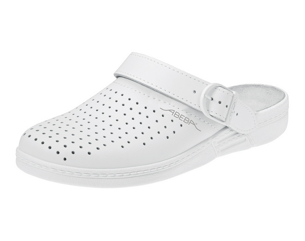 Leder, perforiert, weiss, Clog, mit Fersenriemen, Grösse 43