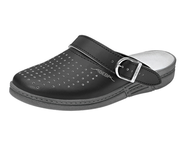 Leder, perforiert, schwarz, Clog, mit Fersenriemen, Gr. 45