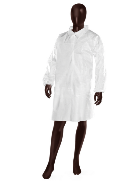 aus laminiertem Gewebe, weiss, 67 g/m², mit Druckknöpfen, schützt gegen eine Vielzahl von Chemikalien, Grösse 2XL