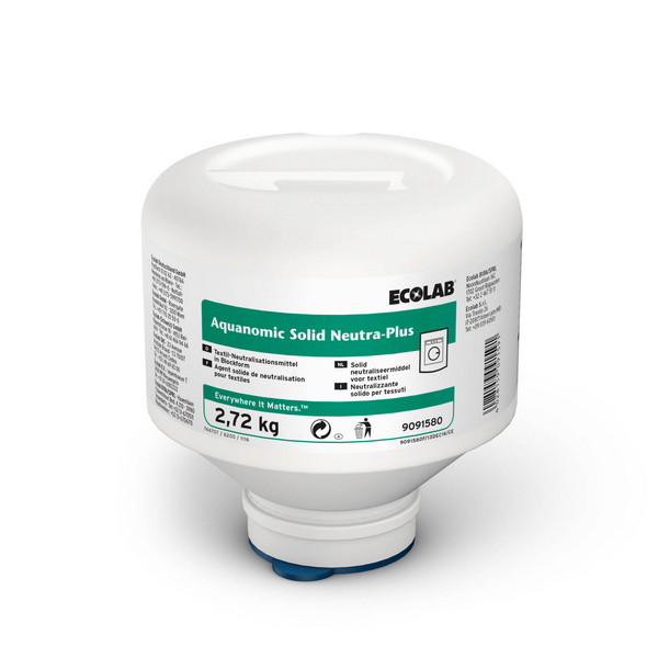 Aquanomic Solid Neutraliser ist ein hochkonzentriertes Solid-Neutralisationsmittel. Es sorgt für einen neutralen pH-Wert der Wäsche. Aquanomic Solid Neutraliser wurde für die automatische Dosierung entwickelt und ist zusammen mit dem Aquanomic Solid-Dosiergerät zu verwenden.