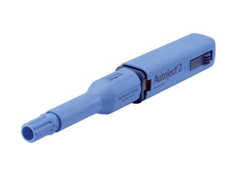 Autoject 2 mit fester Nadel ist ein Autoinjektor, der nur mit festen 1,0 ml, 0,5 ml und 0,3 ml (Einweg)-Spritzen verwendet werden darf.