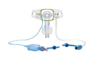 Die BLUselect Suctionaid Tracheostomiekanüle weist einen transparenten Absaugschlauch
