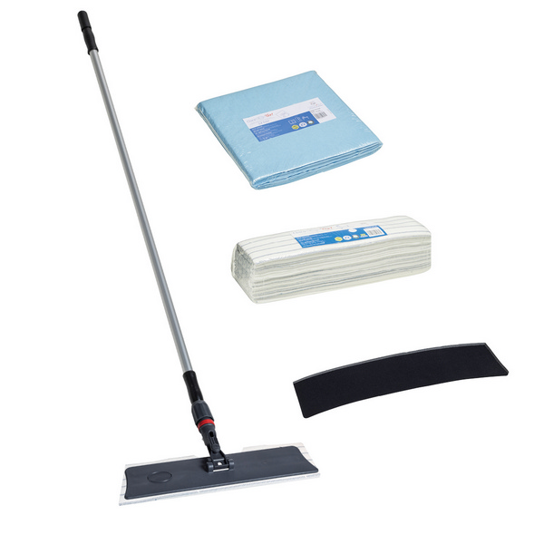 1× Drizz Stiel, 1× Soft-Adapter, 1× Ecoquick Keltthalter, 50 Oberflächentücher blau, 50 Bodentücher blau, Set, Kletthalter 40 cm
