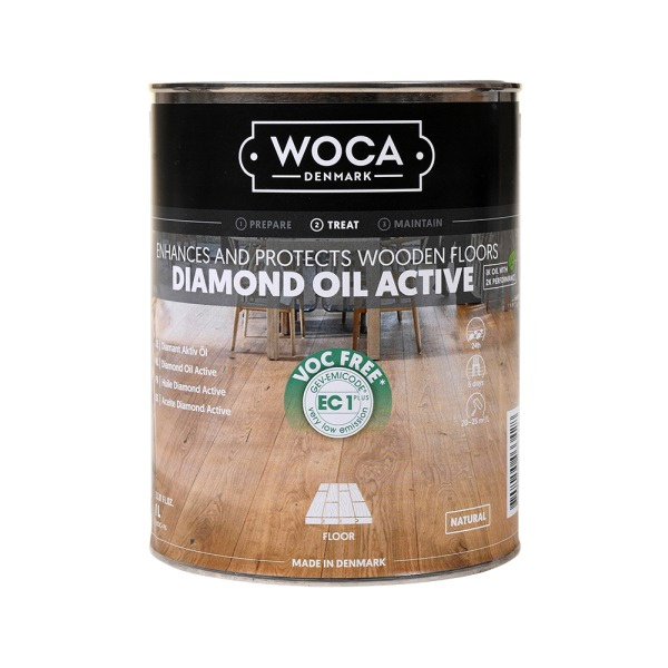 Diamant Aktiv Öl ist ein hochwertiges, geruchsarmes 1-Komponenten-Öl für Holzböden. Es sorgt für eine trittsichere, wasserabweisende Oberfläche, die leicht zu reinigen ist. Dank der >90% Trockenmasse eignet es sich ideal zur maschinellen Grundölung unbehandelter oder frisch geschliffener Böden.