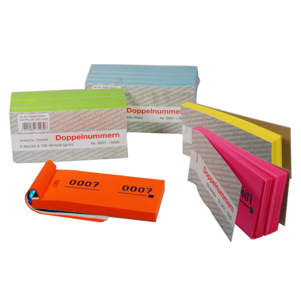 Der Doppelnummern-Block eignet sich für die einfache Organisation der Garderobe oder Essensausgabe usw. an verschiedenen Events. Auf jeder Seite ist zweimal eine Nummer aufgedruckt - eine Nummer behalten die Eventmitarbeitenden und eine wird dem Gast als Beleg ausgehändigt. Jede Seite der handlichen Blöcke ist perforiert, was ein schnelles Abreissen des Gästeblegs ermöglicht.