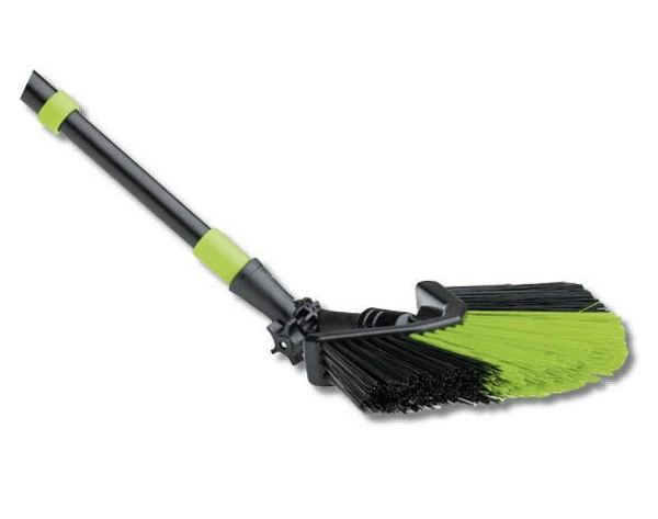 Der ausziehbare Dreiecksbesen mit abwinkelbarem Kopf kombiniert synthetische Borsten und farbcodiertes Design für die effektive Reinigung.