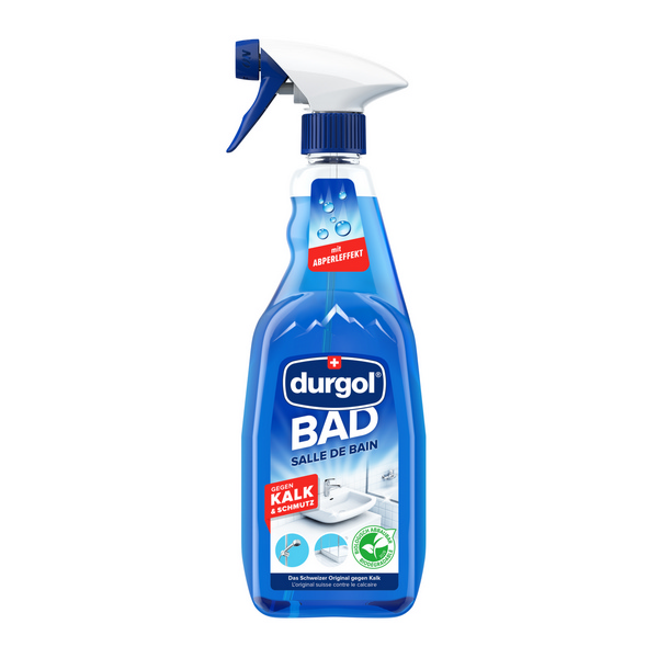 Durgol Surface ist ein Reiniger für das ganze Bad und wirkt kraftvoll gegen Kalk und Schmutz.