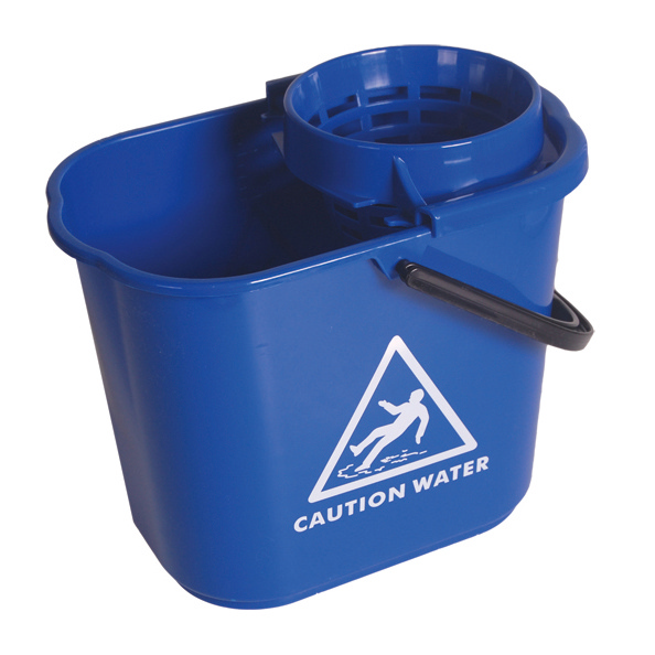 Der Eimer ist mit einer Auspressvorrichtung und einem Ausguss ausgestattet. Er ist ideal für alle Wischarbeiten geeignet.