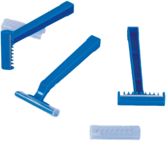 mit zwei übereinanderliegenden Klingen, rostfrei, unsteril, blau