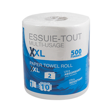 Zellstoff, 2-lagig, Innen- / Aussenabrollung, 19,4 × 23 cm, Rolle à 500 Blatt = 115 lfm, Aussen Ø 19 cm, Innen Ø 6,1 cm, geprägt, weiss