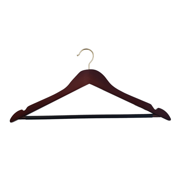 Der Formbügel aus Holz enthält einen rutschfesten Steg und Kerben um mühelos Kleidungsstücke aufzuhängen ohne dass diese herunterfallen.