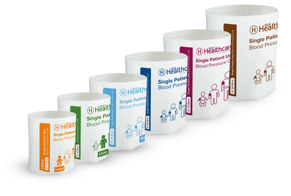Ein komplettes Sortiment von sechs Ein-Patienten-Manschetten in Ein- und Zweischlauchausführung