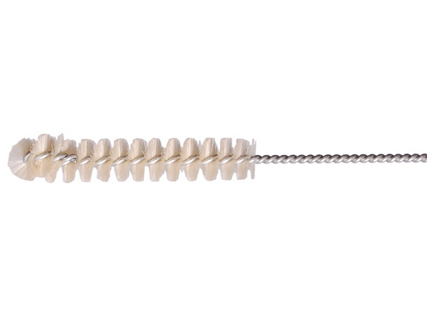 Der Hahnenputzer besteht aus einem verdrillten Draht und einem Besatz aus reinen, hellen Schweineborsten.