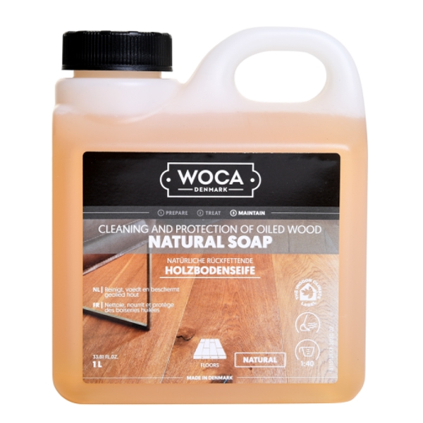 Die WOCA Holzbodenseife wird zur regelmässigen Reinigung und Pflege von geöltem, geseiftem und gewachstem Parkett verwendet. Sie kombiniert Reinigung und Pflege in einem einzigen Schritt. Die in der Seife enthaltenen pflanzlichen Fette wirken nach der Reinigung rückfettend und sorgen dafür, dass die geölte Oberfläche eine wasser- und schmutzabweisende Patina entwickelt.