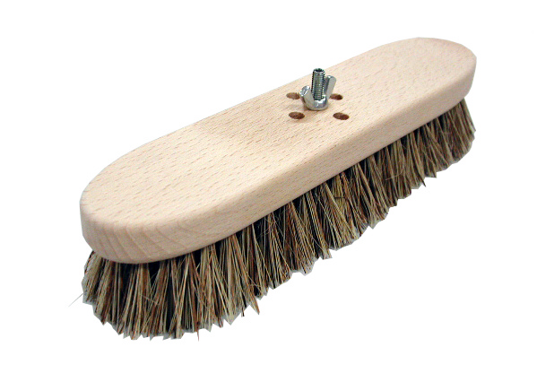 Der Holz-Schrubber hat eine Nylon Bürste, der Besatz ist aus Buche und wird mit Flügelschrauben