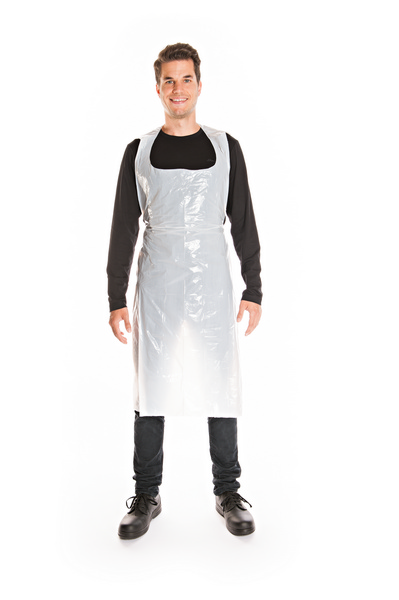 Glatte, geblockte Einwegschürze aus Polyethylen