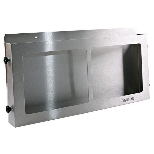 Der Spenderhalter ist aus rostfreiem Edelstahl. Er kann einfach an die Wand gehängt werden und sorgt so sofort für mehr Ordnung und eine vereinfachte Entnahme der Einweghandschuhe.