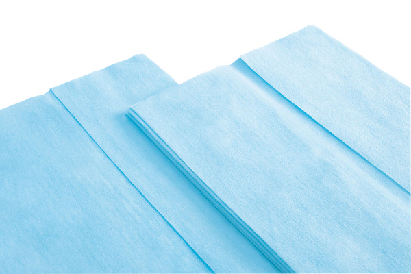 49% Zellstoff / 51% Polyester, Z-Falzung, 78 g/m², gekreppt, wiederverwendbar, 32 × 38 cm, türkis