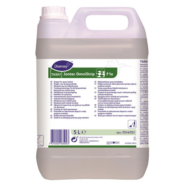 Der TASKI Jontec Omnistrip ist ein Tiefen- und Trockengrundreinigungsmittel für die Anwendung mit Einscheibenmaschinen. Er eignet sich ideal in Kombination mit dem TASKI omni-System.