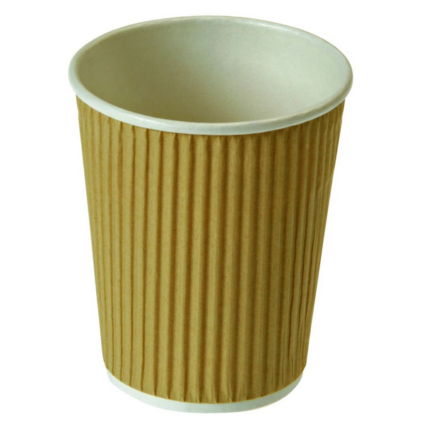 Der Kartonbecher ist doppelwandig gerippt und ist angenehm in den Händen zu halten.