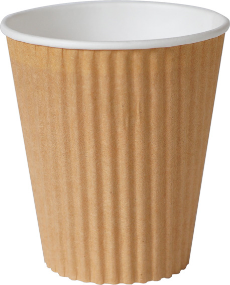 3 dl, Karton / PLA-Beschichtung, doppelwandig, gerillt, braun, Ø 90 × 113 mm