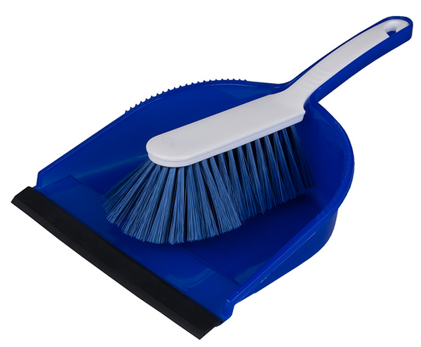 Die Kehrgarnitur besteht aus einer farbigen Schaufel und einem Besen mit farbigen Borsten. Die schwarz angespritzte Lippe der Schaufel ermöglicht ein einfaches Aufkehren.