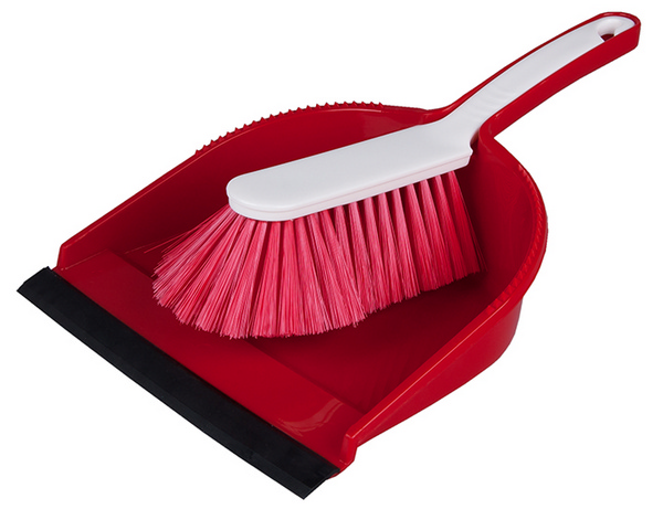 Die Kehrgarnitur besteht aus einer farbigen Schaufel und einem Besen mit farbigen Borsten. Die schwarz angespritzte Lippe der Schaufel ermöglicht ein einfaches Aufkehren.
