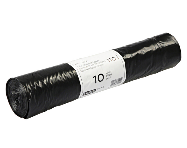 110 Liter, LD-PE Recycling, schwarz, 730 × 1000 + 50 mm, 0,045 mm, Rolle à 10 Säcke