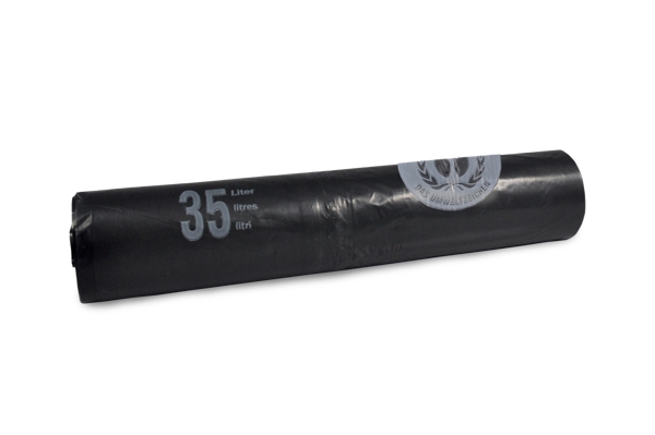 35 Liter, LD-PE Postconsumer Recycling, schwarz, 280 / 275 × 700 mm, 0,033 mm, Rolle à 20 Säcke