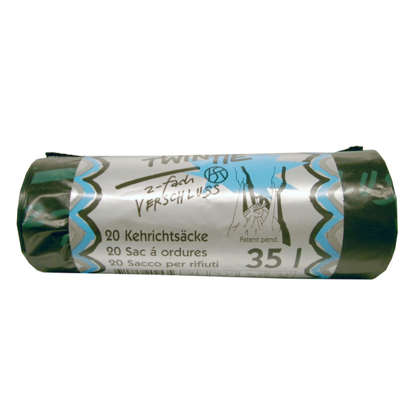 35 Liter, MD/LLD-PE Neuware, schwarz, Knotenverschluss, 380 / 180 × 800 mm, 0,035 mm, Rolle à 20 Säcke