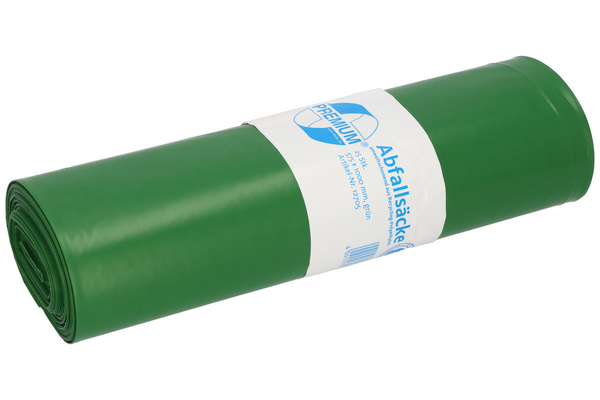 70 Liter, LD-PE, grün, 575 × 1000 mm, 0,06mm, 25 Säcke pro Rolle