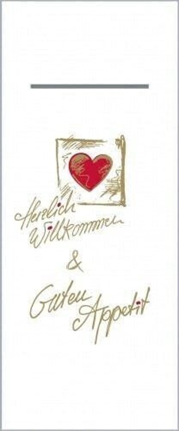 Airlaid, 40 × 40 cm, 65 g/m², 1/8-Falzung, Herzlich Willkommen
