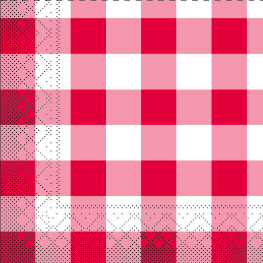 33 × 33 cm, 3-lagig, 1/4-Falzung, KARO, rot