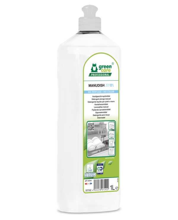 MANUDISH zero% ist ein ökologisches, intensiv reinigendes Spülmittel. Unter Beachtung der biologischen Kreisläufe werden die Gesundheit der Menschen und die Sicherheit der Reinigungskräfte gewährleistet. Aufgrund seiner besonderen Tensidzusammensetzung ist es CLP-frei, um die höchste Anwendersicherheit bei gleichzeitig hoher Effektivität zu bieten.