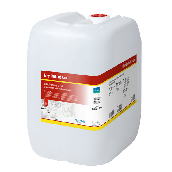 MayaBrillant sauer ist ein flüssiges, säuerliches sowie tropfen- und fleckenfreies Glanztrocknerkonzentrat für hartes Wasser. Das Konzentrat ist schaumgebremst und besonders umweltfreundlich.