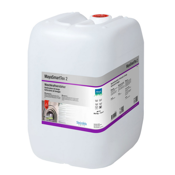MayaSmartTex 2 ist ein besonders umweltfreundlicher und flüssiger Waschkraftverstärker für die Verwendung mit Wasserhärten bis zu 25 °fH. Der Waschkraftverstärker enthärtet das Wasser und gibt der Waschlauge die nötige Alkalität.