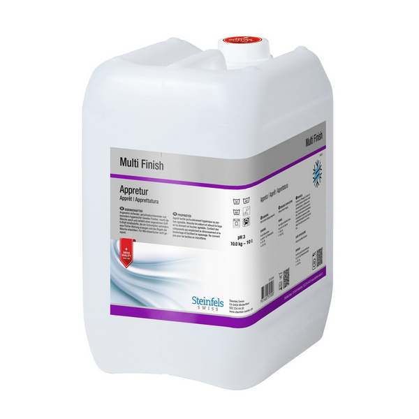 Multi Finish ist ein geruchsabsorbierender und angenehm duftender Gewebe-Finisher, welches der Wäsche einen weichen Griff verleiht.