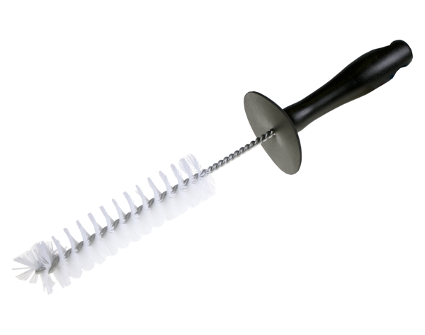 Die Pissoirbürste aus weissem PP mit Besatz aus Nylon hat einen Ø 35 mm. Der Griff ist zudem schwarz gummiert.