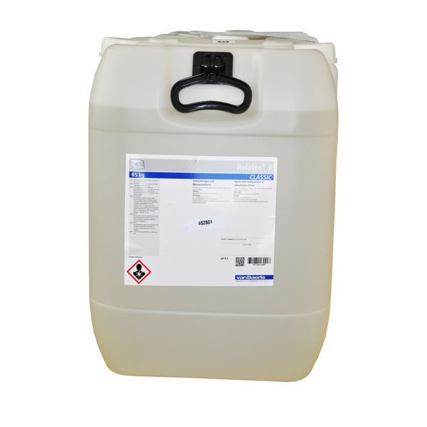 Relatex 3 ist ein Schmutzträger und Wasserenthärter zur Verhinderung von Kalkablagerungen mit reinigungsaktiven Eigenschaften für alle Textilien.