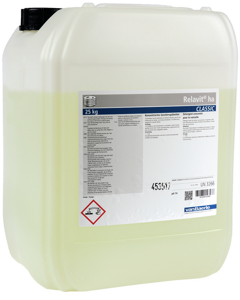 Relavit ha ist ein chlorhaltiges und alkalisches Geschirrspülmittel für die Verwendung mit weichem Wasser. Das Geschirrspülmittel schont das Material (inkl. Silber) und ist einfach in der Anwendung. Es hat ein hohes Lösevermögen von Stärke- und Eiweissrückständen.