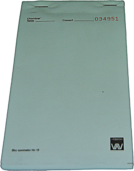 Der Service-Kassablock Duplikat besteht aus Kohlepapier, mit welchem eine Kopien erstellt werden kann wenn das erste Blatt beschrieben wird. Der handliche Service-Kassablock kann in Restaurants und Kaffees benutzt werden um Bestellungen an die Küche weiter zu geben.