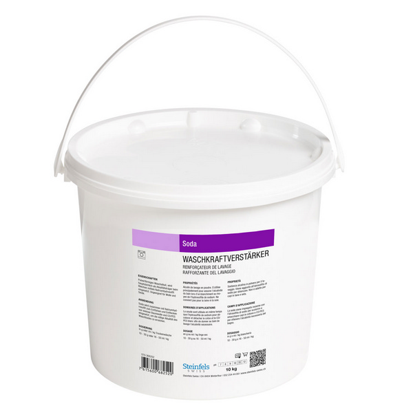 Soda kristallisiert ist ein hochkalischer Waschkraftverstärker für Weisswäsche. Kombiniert mit Natriumhydrosulfit erreicht es die nötige Alkalität des Waschbades und entfernt Flecken von weisser Baumwolle und Polyester.