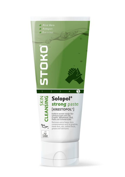 Solopol strong paste und Solopol Classic EXTRA ist ein pH-hautneutraler, reibemittelhaltiger Handreiniger mit sehr starker Waschkraft und sehr guter Hautverträglichkeit für sehr starke bis extreme Verschmutzungen. Er enthält Aloe Vera, Hautschutzstoff und Rückfetter.