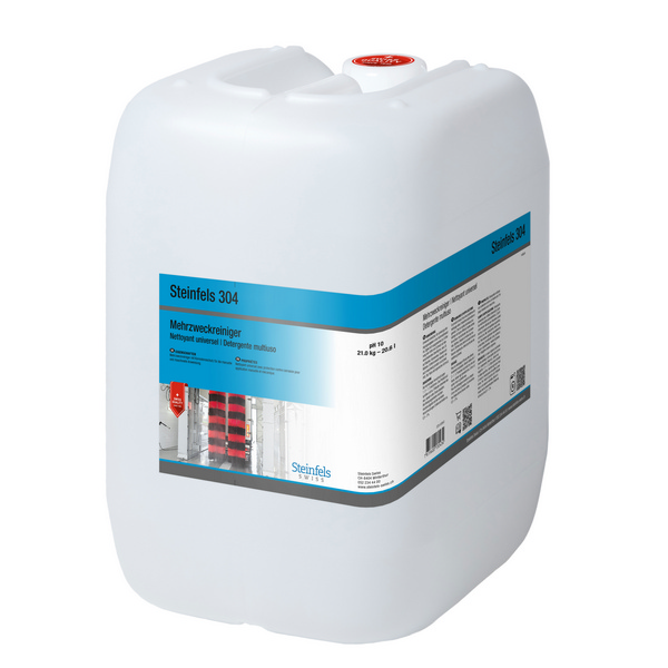 Steinfels 304 ist ein universeller Mehrzweckreiniger für die manuelle und maschinelle Reinigung. Der Mehrzweckreiniger ist kälteabweisend und schützt durch die darin enthaltenen Inhibitoren vor Korrosionsschäden. Steinfels 304 hat ein hohes Lösevermögen für Fett, Öl, Russ, organischem Schmutz und Staub.