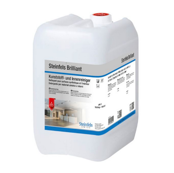 Steinfels Brillant ist ein gebrauchsfertiges Sprüh- und Kunststoffreinungs-Konzentrat für die Entfernung von Kugelschreiber-, Bleistift- und Filzstiftflecken auf allen Oberflächen.