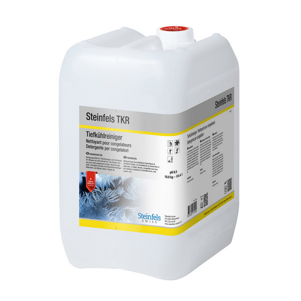Steinfels TKR ist ein wirksames Reinigungsmittel für Tiefkühlanlagen, Tiefkühlzellen und Kühlräume bis -30 ºC. Ein Abtauen ist nicht erforderlich, die Anlagen müssen auch nicht ausgeräumt werden. Der Steinfels TKR ist verträglich auf allen feuchtigkeitsbeständigen Materialien.