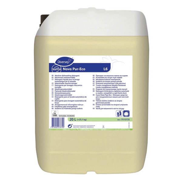 Suma Nova Pur-Eco L6 ist ein ökologisch-zertifiziertes Geschirrwaschmittel für alle Wasserhärten. Es ist ein besonders kraftvoller Geschirrreiniger für mittelhartes Wasser, der in allen gewerblichen Eintank- und Mehrtankgeschirrspülmaschinen eingesetzt werden kann. Er garantiert exzellente Schmutzentfernung aufgrund seiner optimalen Kombination an Alkalikomponenten und wasserhärtebindenden Substanzen.
