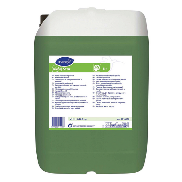 Suma Star D1 ist ein konzentriertes Handgeschirrspülmittel für die Reinigung von Töpfen, Pfannen, Küchengeräten, Glas und allen abwaschbaren Utensilien. Es basiert auf einer optimalen Kombination von anionischen und nichtionischen Tensiden, die Fett und angetrocknete Speisereste lösen sowie ein leichtes und streifenfreies Abspülen ermöglicht.