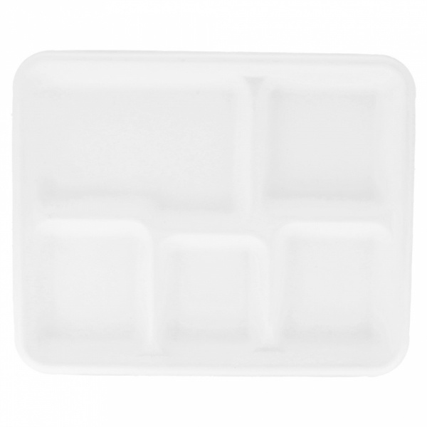 Bagasse, weiss, kompostierbar, fünfgeteilt, 265 × 215 × 25 mm, ohne Deckel