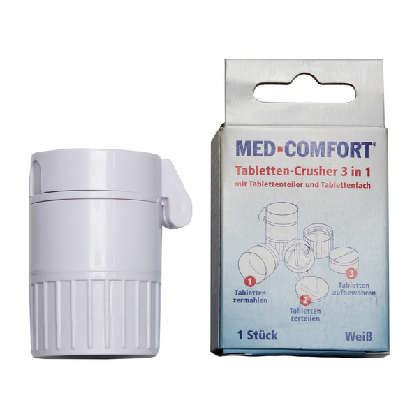 mit integriertem Tablettenteiler und Tablettenfach, weiss